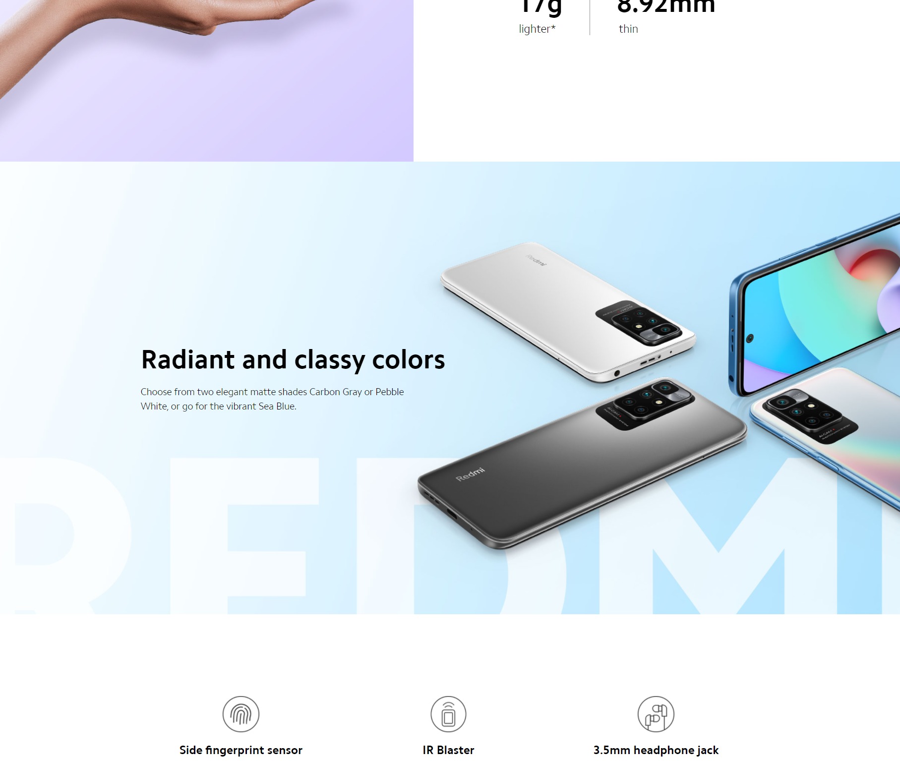 - Color: Carbon Gray, Pebble White, Sea Blue