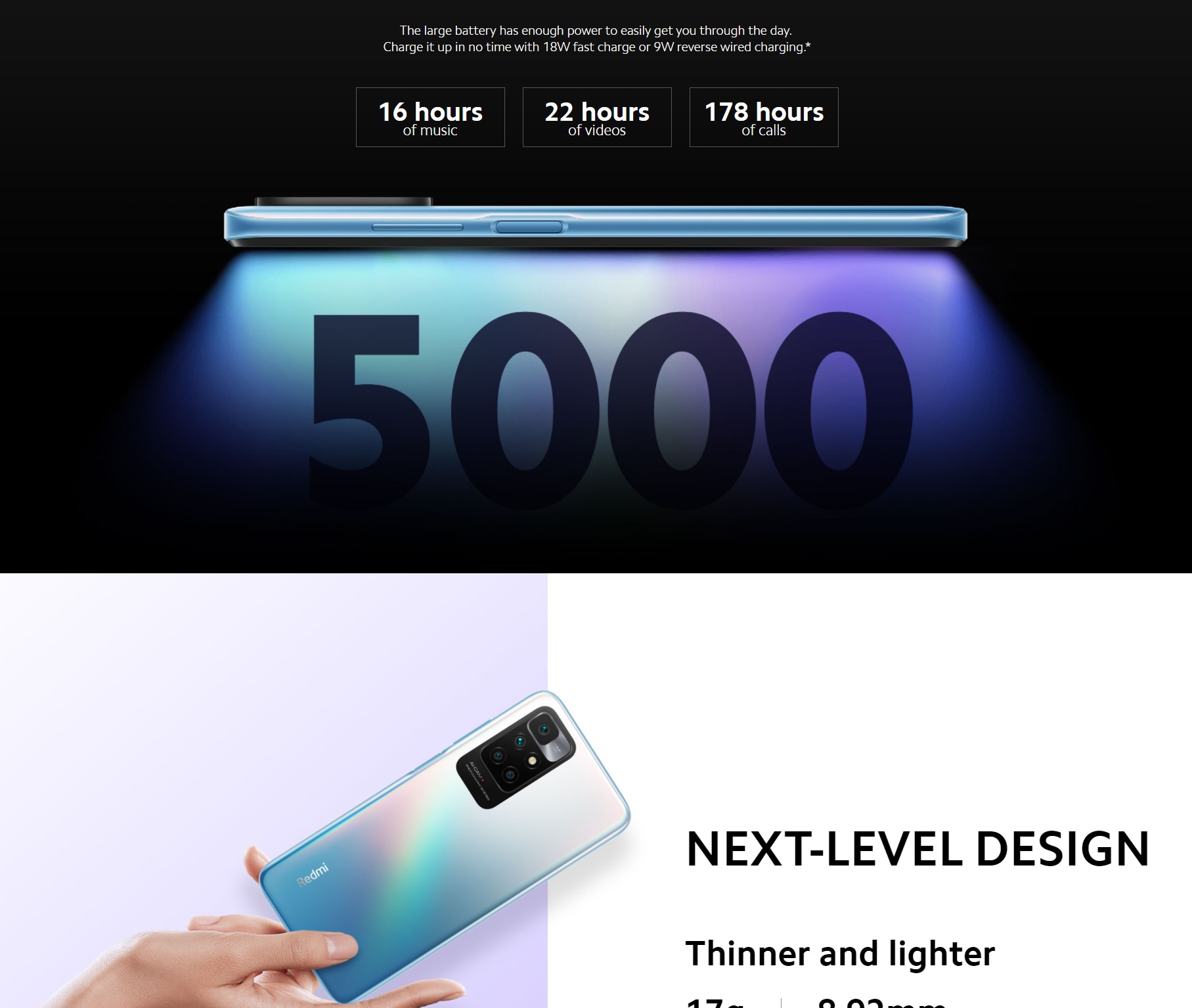- 18W fast charging