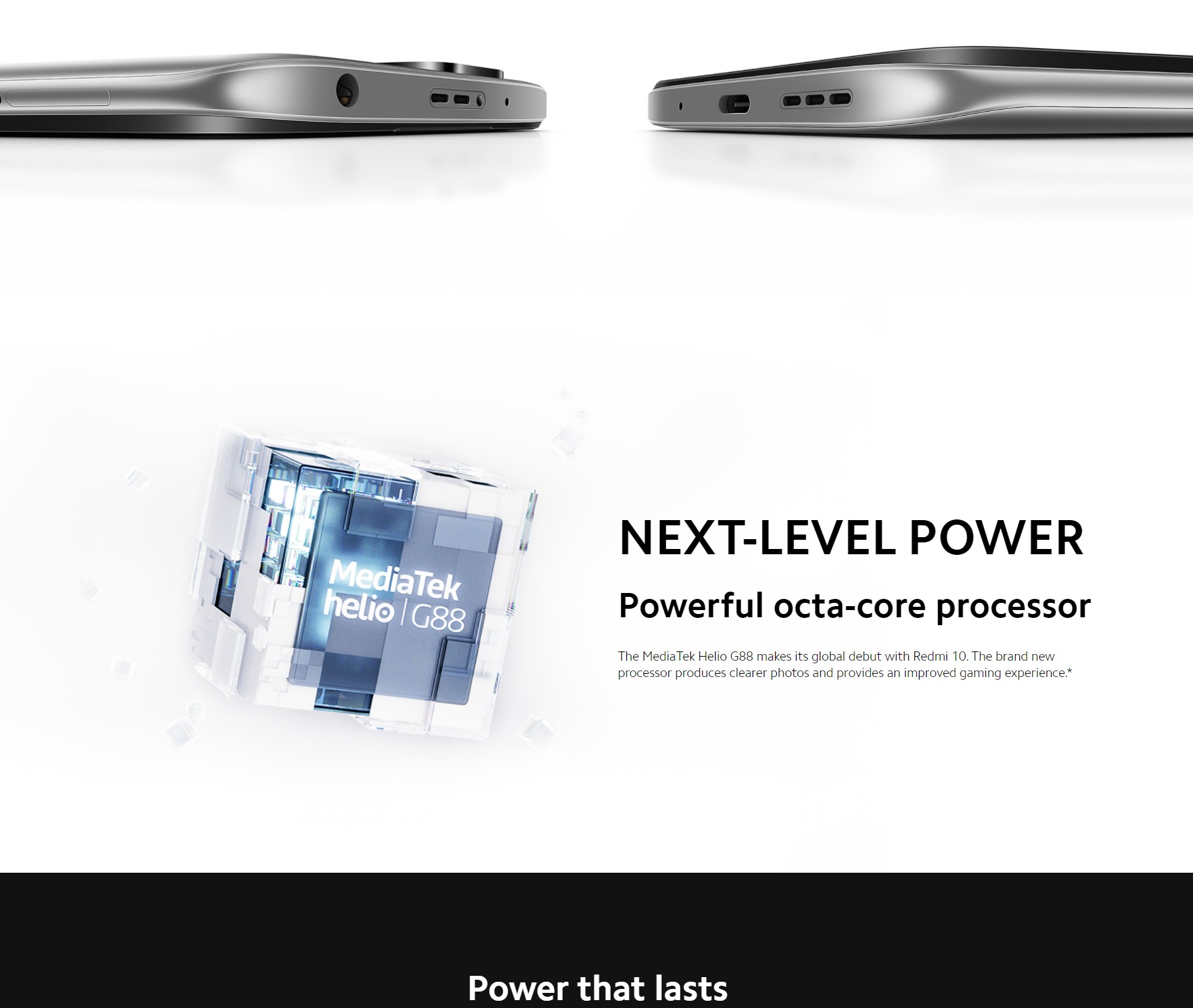 - MediaTek Helio G88 · 12nm process technology · Octa-core CPU 2x Arm Cortex-A75 @ Up to 2.0GHz 6x Arm Cortex-A55 @ Up to 1.8GHz · Mali-G52 MC2