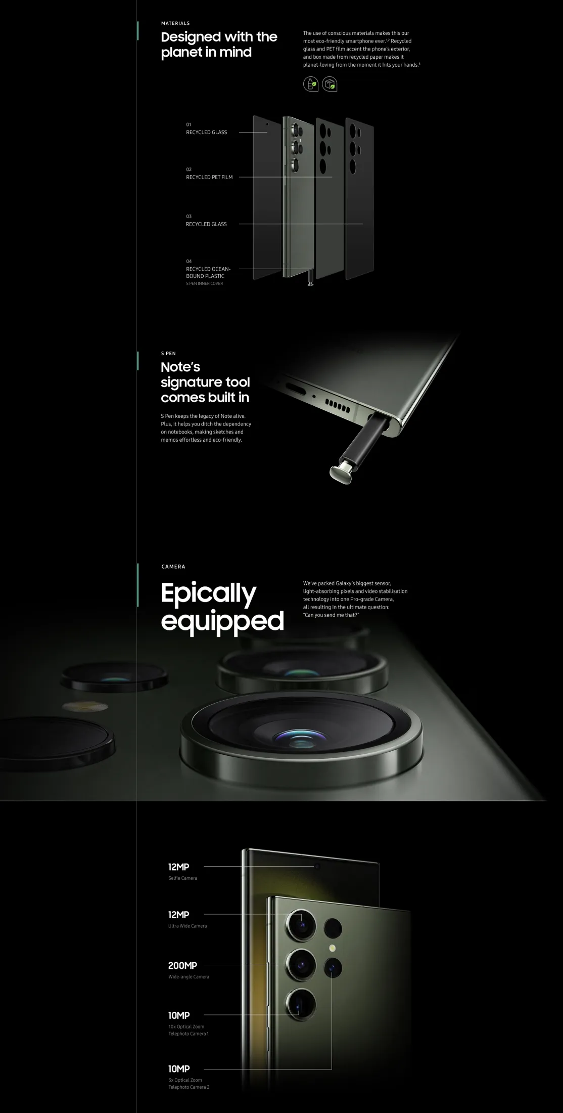 • Pro-grade Camera: 200MP Wide, 12MP Ultra Wide, 10MP Tele 3x Optical Zoom, 10MP Tele 10x Optical Zoom